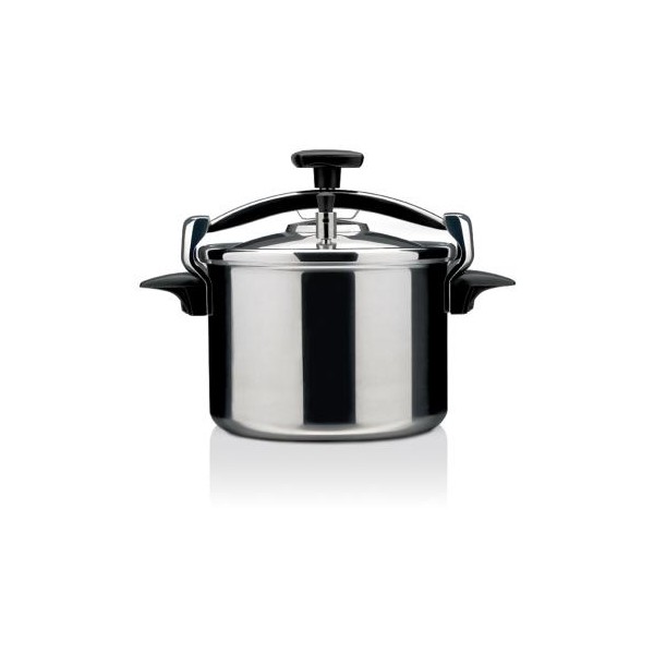 Autocuiseur en alu 8 litres paroi en alu poli avec 4 mm d'épaisseur système de fermeture progressive soupape rotatif indicateur de pression anses ergonomiques en bakélite qui résistent jusqu'à 180
