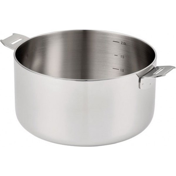 casserole en acier inoxydable. Possibilité d'adapter 2 poignées amovibles latérales ou un long manche amovible. Les poignées possèdent des indicateurs de sécurité. Convient à toutes les sources de chaleur y compris induction. poignée non incluse