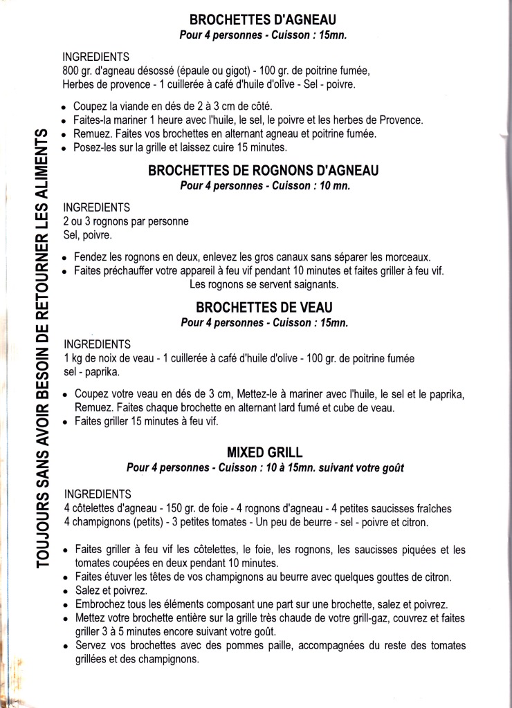 Temps de cuisson (Selon l’intensité de vos feux, ne tenant pas compte de découvertes opérées)